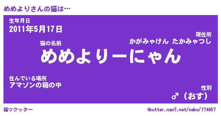 | 意味不明あだ名 | 『ペロリンめめより』『永久保存めめより』 |