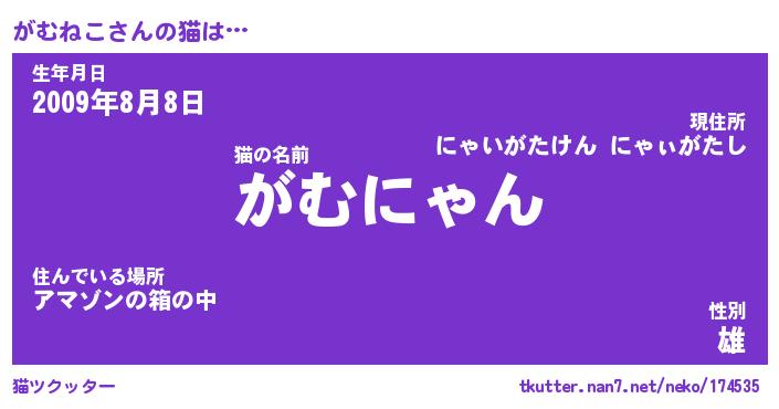 | 男性向けラノベタイトル風あだ名 | 『がむねこの憂鬱』 |