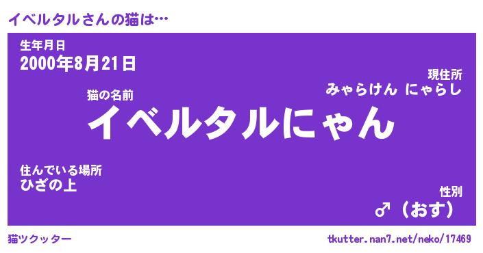 | 男性向けラノベタイトル風あだ名 | 『イベルタルの憂鬱』 |