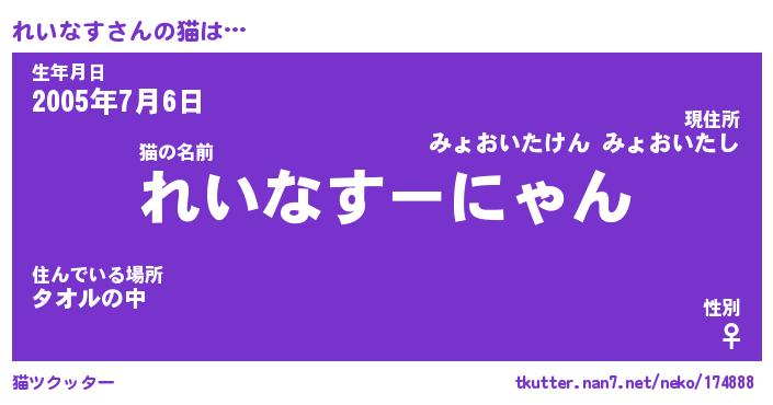 | 意味不明あだ名 | 『ペロリンれいなす』『永久保存れいなす』 |