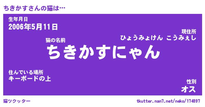 | 意味不明あだ名 | 『ペロリンちきかす』『永久保存ちきかす』 |