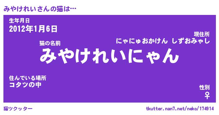 | ファンタジー風あだ名 | 『ミヤフェル』『エターナルミヤケレイー』 |