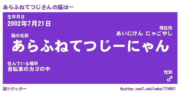 | 生年月日? …「くろねこ」 | 8月01日 10:16 |