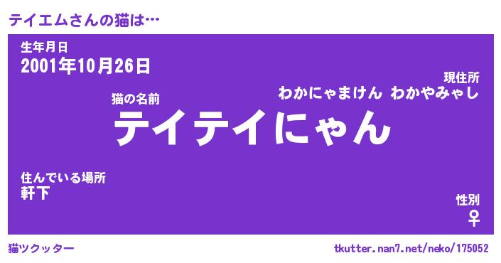 | 意味不明あだ名 | 『ペロリンテイエム』『永久保存テイエム』 |