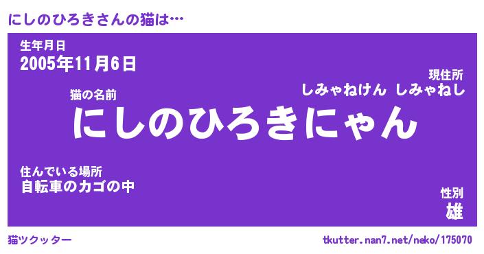 | 男性向けラノベタイトル風あだ名 | 『にしのひろきの憂鬱』 |