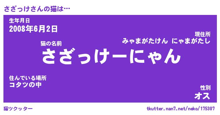 | 意味不明あだ名 | 『ペロリンさざっけ』『永久保存さざっけ』 |
