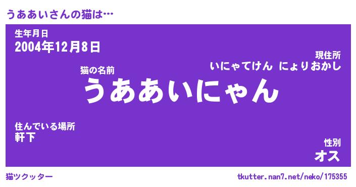 | 意味不明あだ名 | 『ペロリンうああい』『永久保存うああい』 |