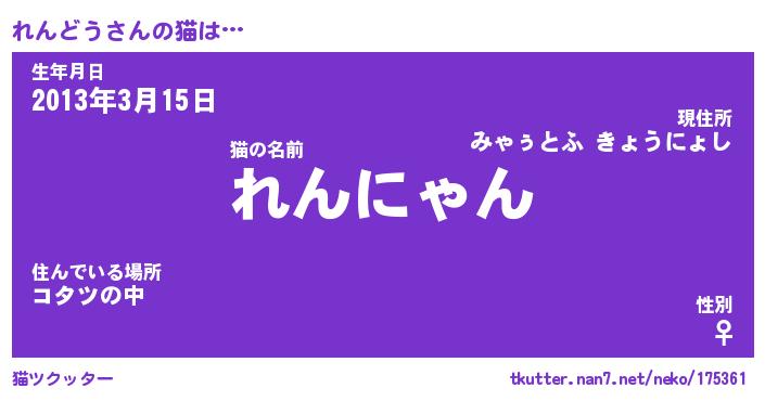 | ポケモン風あだ名 | 『レンチュウ』『レンドダネ』 |