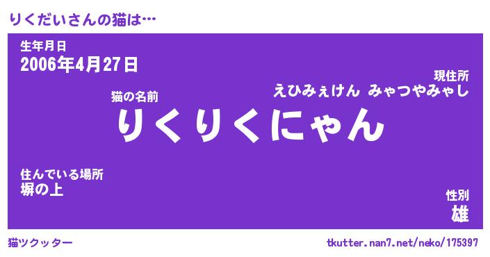 | 生年月日? …「くろねこ」 | 8月01日 10:16 |