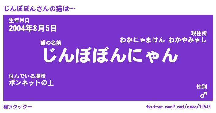 | 男性向けラノベタイトル風あだ名 | 『じんぼぼんの憂鬱』 |