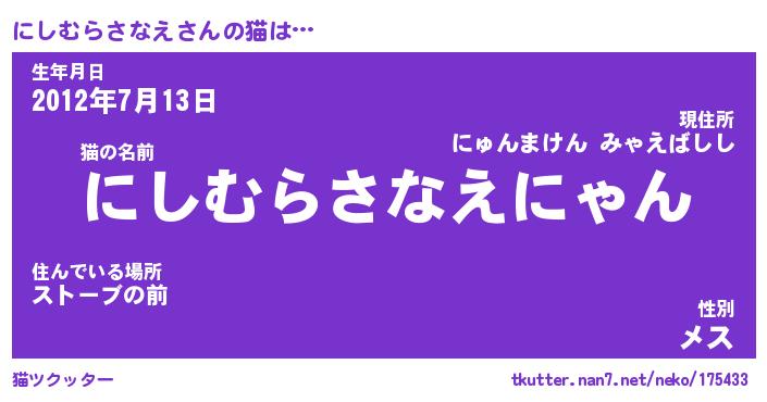 | ポケモン風あだ名 | 『ニシチュウ』『ニシムダネ』 |