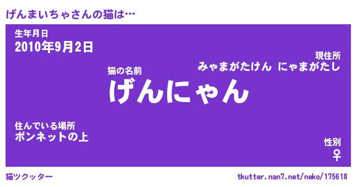 | 男性向けラノベタイトル風あだ名 | 『げんまいちゃの憂鬱』 |