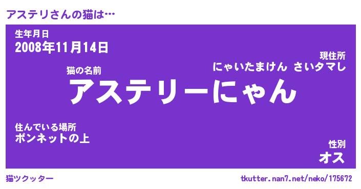 | 意味不明あだ名 | 『ペロリンアステリ』『永久保存アステリ』 |