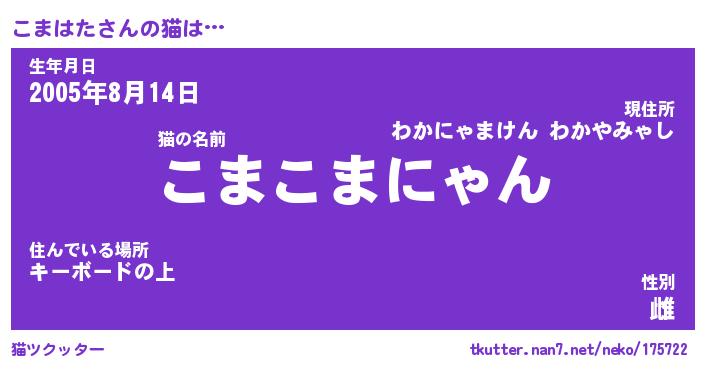 | ファンタジー風あだ名 | 『コマフェル』『エターナルコマハター』 |
