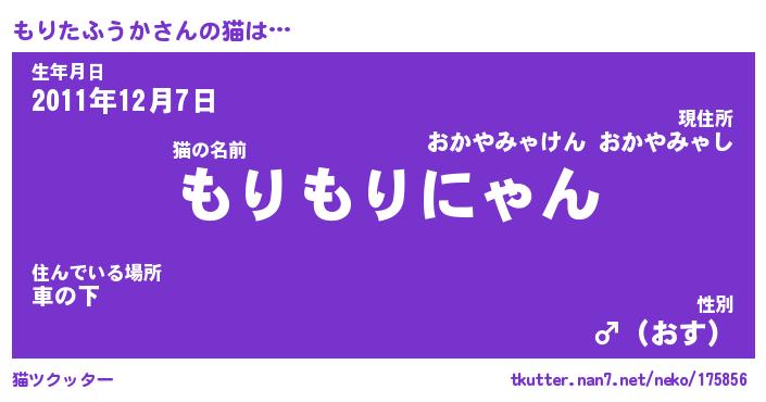 | ポケモン風あだ名 | 『モリチュウ』『モリタダネ』 |