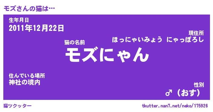 | ポケモン風あだ名 | 『モズチュウ』『モズダネ』『ヒモズ』 |