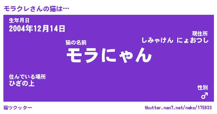 | 意味不明あだ名 | 『ペロリンモラクレ』『永久保存モラクレ』 |