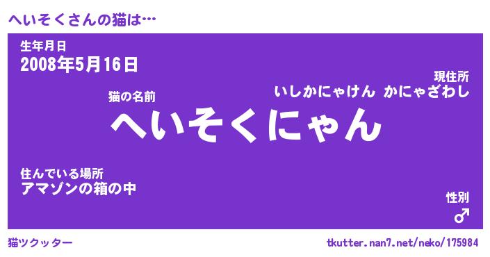 | 欧米人風あだ名 | 『マイケルへいそく』『ウサインへいそく』 |