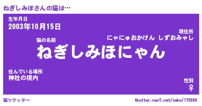 | 女子向けラノベタイトル風あだ名 | 『(仮)ねぎしみほのやんごとなき事情』 |