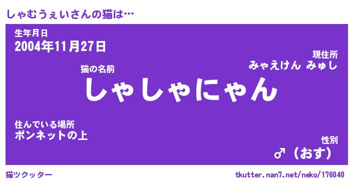 | ポケモン風あだ名 | 『シャチュウ』『シャムダネ』 |