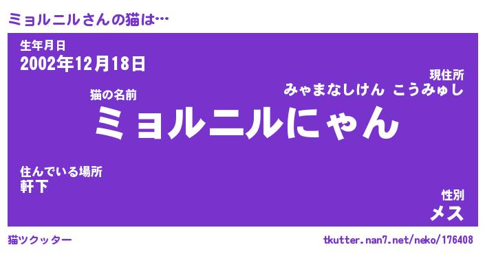 | ヒーロー風カッコイイあだ名 | 『スーパーミョルニル』『黄金騎士ミョ』 |