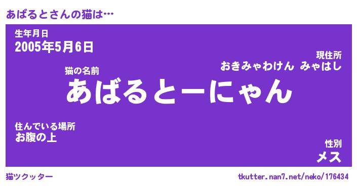 | 意味不明あだ名 | 『ペロリンあばると』『永久保存あばると』 |