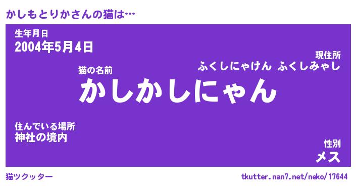 | ポケモン風あだ名 | 『カシチュウ』『カシモダネ』 |