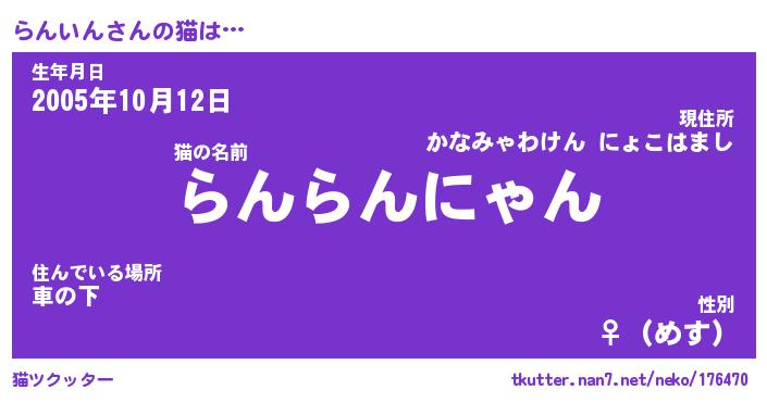 | 意味不明あだ名 | 『ペロリンらんいん』『永久保存らんいん』 |