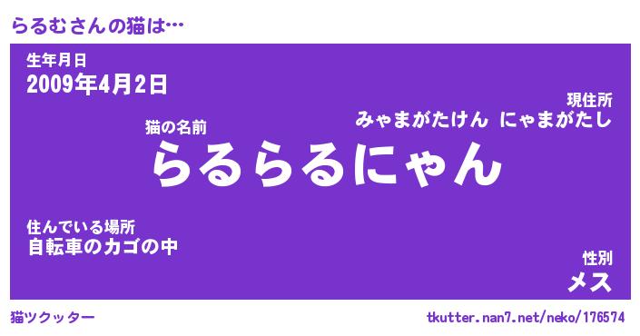 | ヘコむあだ名 | 『らるっふぃ~』『牛乳』『らるお』 |