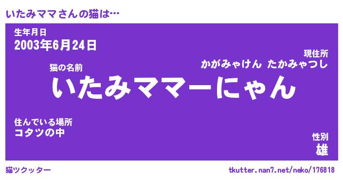 | ヒーロー風カッコイイあだ名 | 『スーパーイタミママ』『炎刃騎士イタ』 |