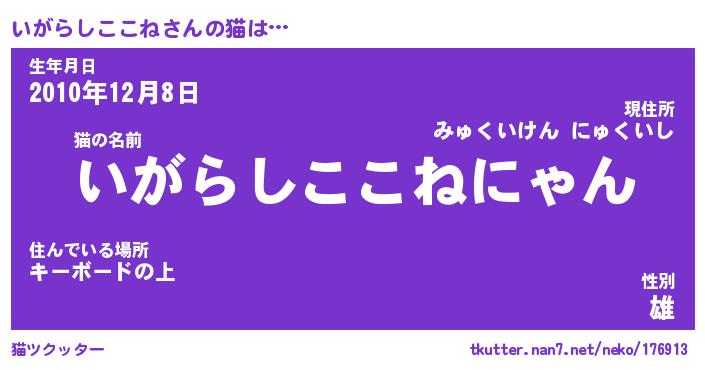 | 男性向けラノベタイトル風あだ名 | 『いがらしここねの憂鬱』 |