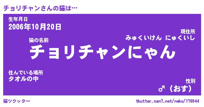 | 男性向けラノベタイトル風あだ名 | 『チョリチャンの憂鬱』 |
