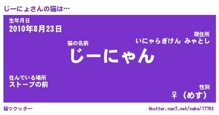 | 意味不明あだ名 | 『ペロリンじーにょ』『永久保存じーにょ』 |
