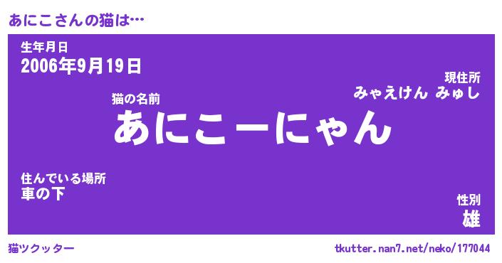 | ポケモン風あだ名 | 『アニチュウ』『アニコダネ』 |