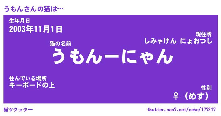 | 意味不明あだ名 | 『ペロリンうもん』『うもんフォーエバー』 |