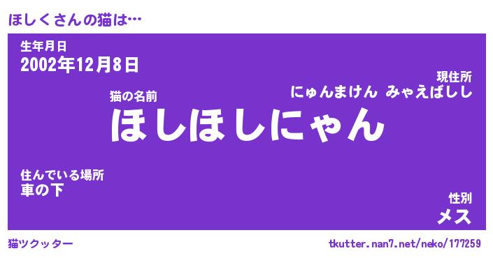 | ツイッター | ほしくさんのツイッターID『katatsumuri_nyan』 |
