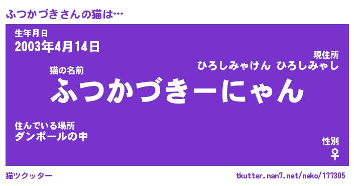 | ファンタジー風あだ名 | 『フツフェル』『エターナルフツカヅキー』 |