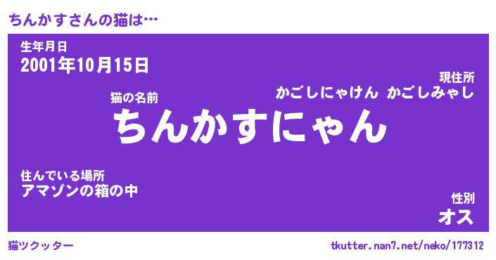 | ツイッター | ちんかすさんのツイッターID『konnyaku_star』 |