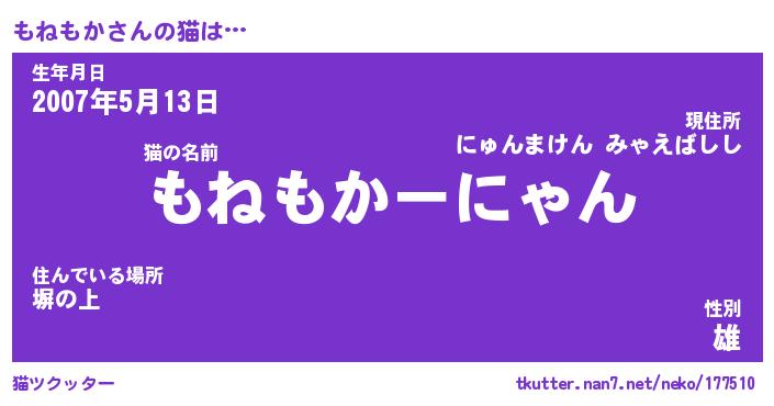| 意味不明あだ名 | 『ペロリンもねもか』『永久保存もねもか』 |