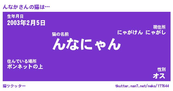 | ポケモン風あだ名 | 『ンナチュウ』『ンナカダネ』 |
