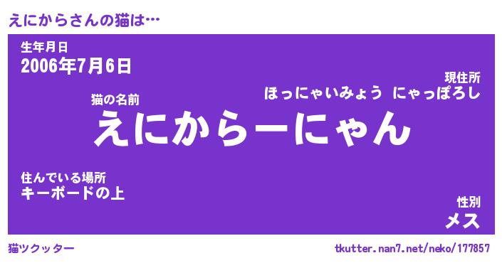 | 意味不明あだ名 | 『ペロリンえにから』『永久保存えにから』 |