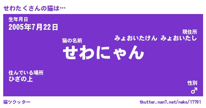 | ポケモン風あだ名 | 『セワチュウ』『セワタダネ』 |