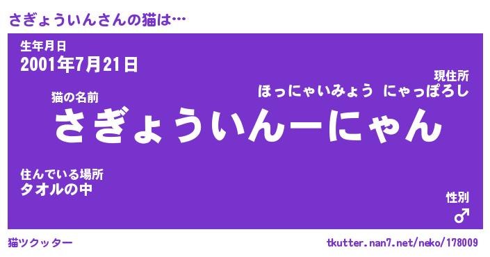 | 生年月日? …「くろねこ」 | 8月01日 10:16 |