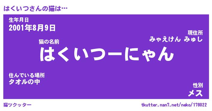 | 生年月日? …「くろねこ」 | 8月01日 10:16 |