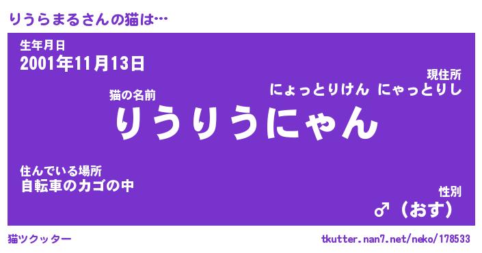 | 生年月日? …「くろねこ」 | 8月01日 10:16 |