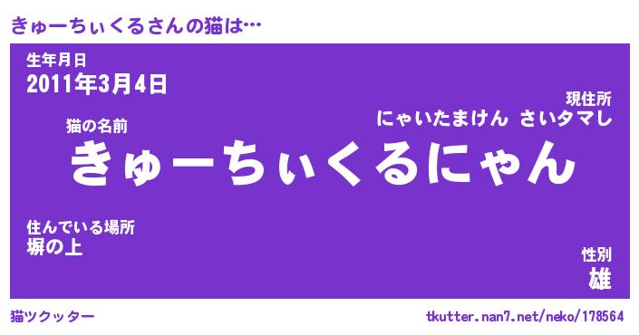 | ヘコむあだ名 | 『きゅっふぃ~』『つくし』『きゅを』 |