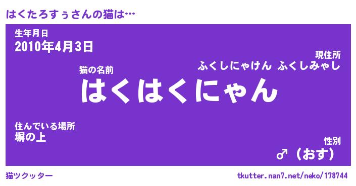 | 生年月日? …「くろねこ」 | 8月01日 10:16 |
