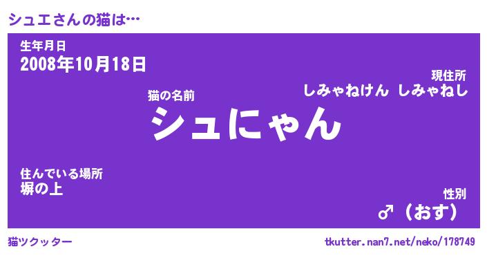 | ヘコむあだ名 | 『シュふぇ~』『なまこ酢』『シュお』 |