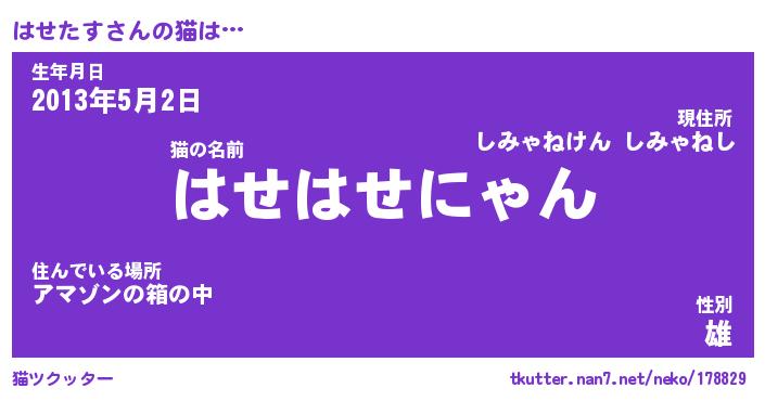 | 2回繰り返すあだ名 | 『はせはせ』『ははせせ』『ぬめぬめ』 |