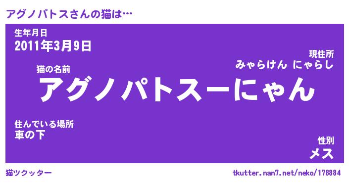 | 肩書あだ名 | 『アグノパトス社長』『アグノパトス塾長』 |